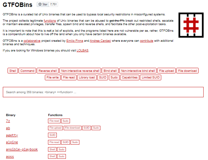gtfobins.github.io Living Off The Land Linux Binaries