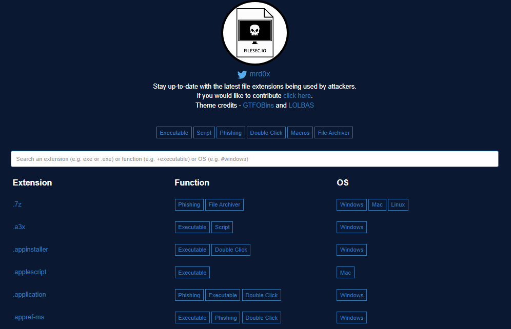 filesec.io Attacker file extensions