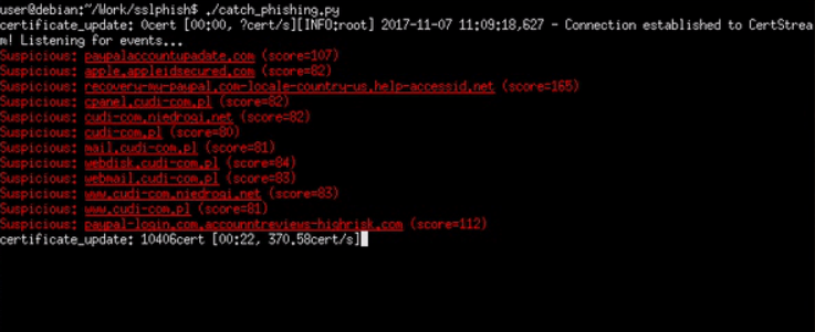 Phishing Catcher Phishing catcher using Certstream