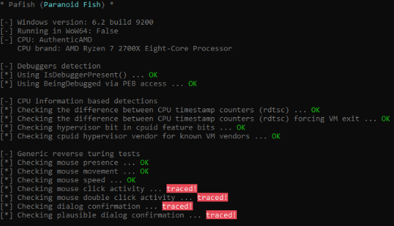 pafish Virtual machine sandbox detector